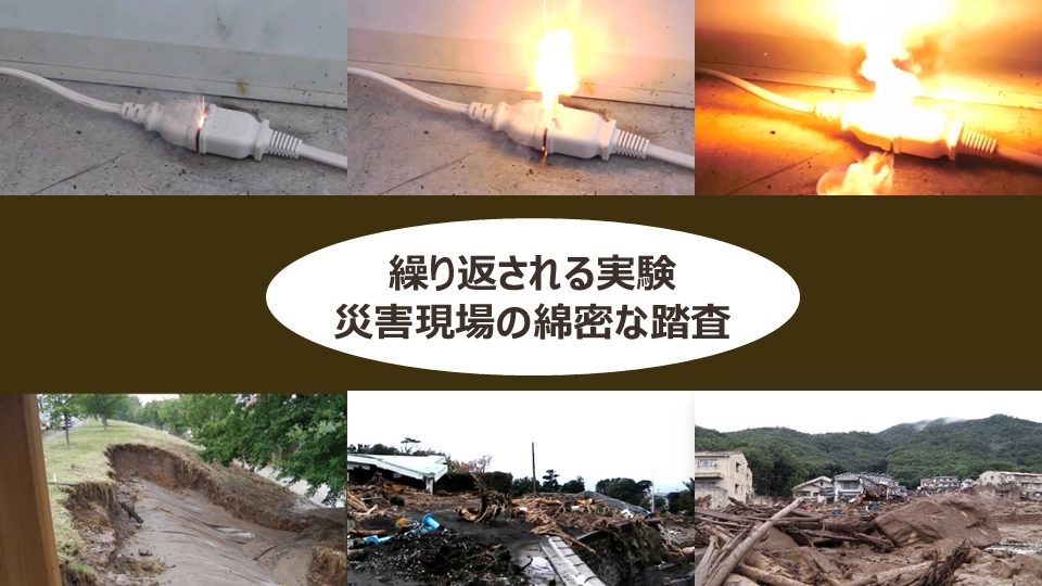 出火原因や消防活動の分析、地震・風水害に対する備え、構造物破壊事故など、多くの災害テーマに対応します。